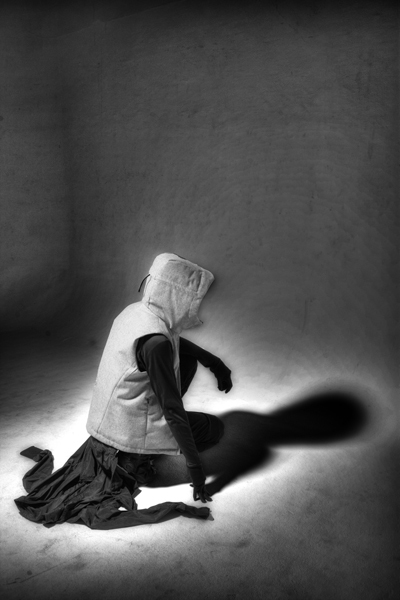 フードを取り外すとクリアードジャケットの形になり、襟を折り返すとレザーのテーラードジャケットに変形します。
